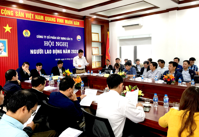 Ngày 15/02/2020, BCH Công đoàn Công ty đã tổ chức Hội nghị người lao động tại trụ sở chính Công ty CP Xây dựng Cầu 75. Dự Hội nghị có các đồng chí là thành viên HĐQT, Ban Giám đốc, đại biểu do NLĐ các đơn vị bầu và toàn thể BCH Công đoàn các cấp của Công ty.