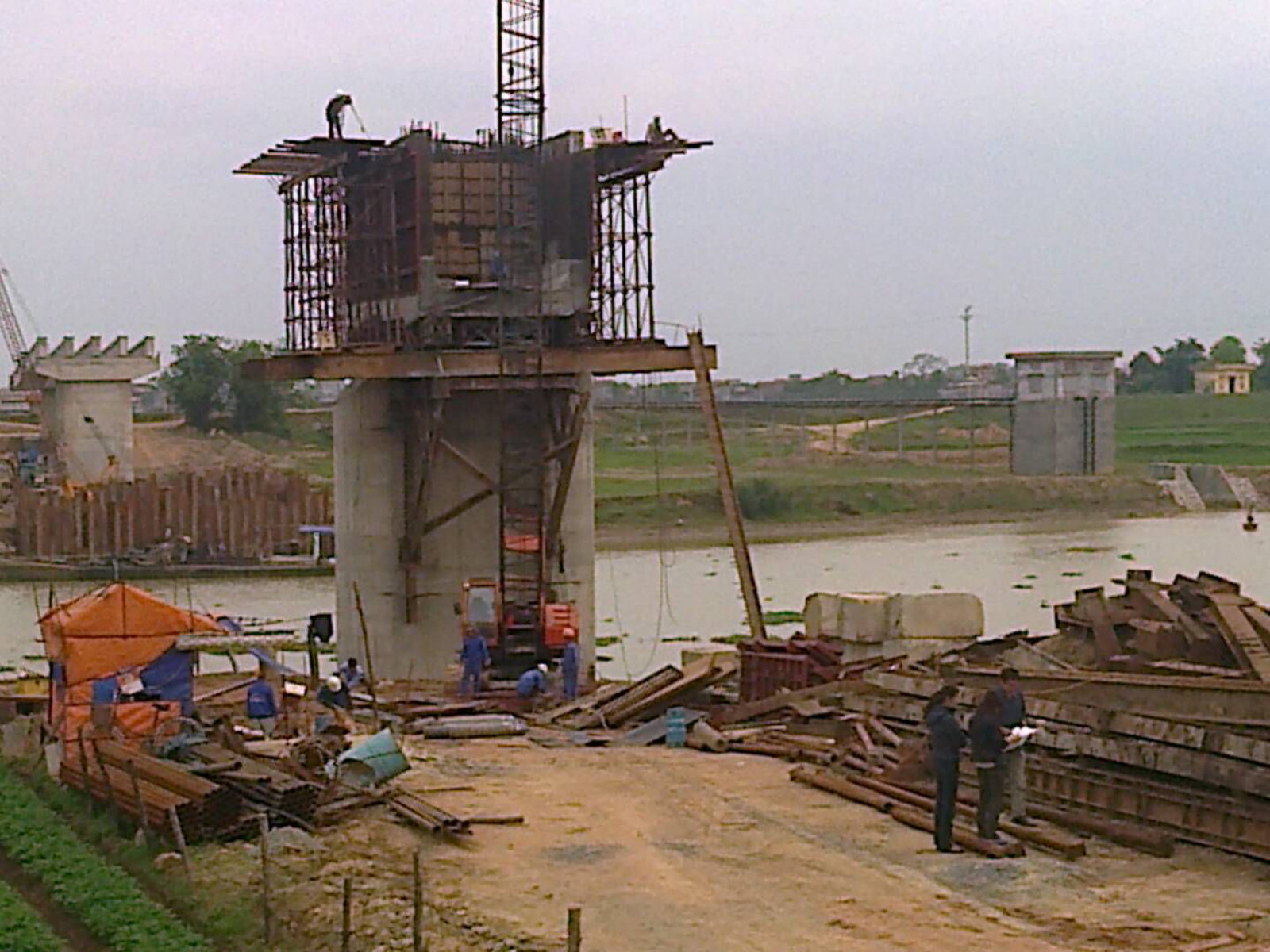 Thi công khối K0 trụ T7– nhịp đúc hẫng qua sông cầu Đông Xuyên
